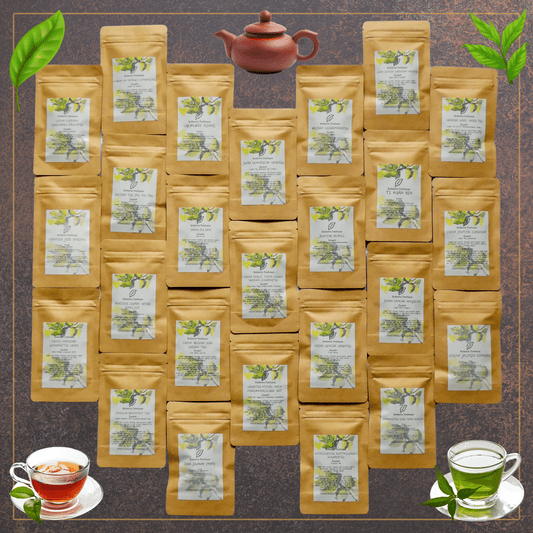 Probierpaket: Von jeder der 25 angebotenen Teesorten 20 Gramm